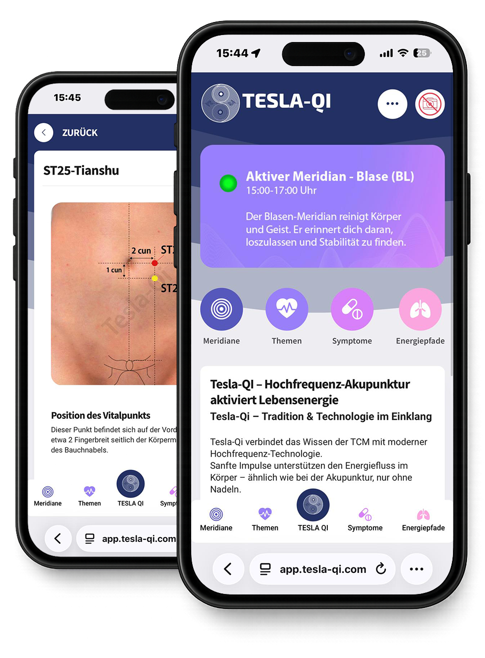 Ob Stress, Schlaf oder Regeneration – ich öffne Tesla-Qi, sehe die Punkte, lese die Hinweise und kann direkt starten.